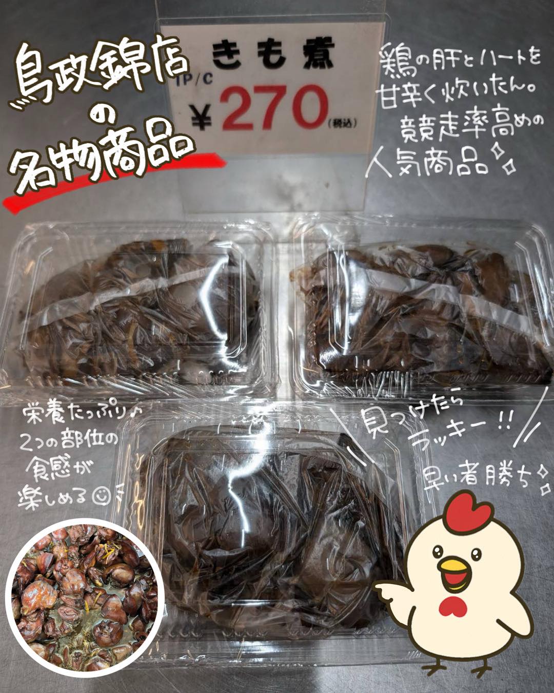 京の台所と言われる錦市場のすぐ近く、高倉通り錦下ル大丸前に小売り店舗を構えています。 新鮮な若鶏を中心に、「京地どり」「丹波地どり」などの地鶏や「大山どり」「田舎どり」などの銘柄鶏、合鴨や鶏卵、唐揚げや焼き鳥などの総菜類の販売も行っています。 |